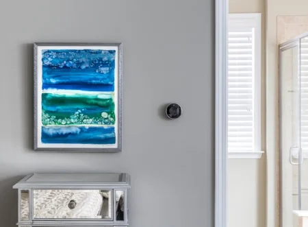 My personal preference for my home's art is rather abstract, modern art. If you prefer this too, look no farther than Linda Donahue. Her art draws inspiration from the San Francisco Bay area where she lives. “Request a custom order and have something made just for you”. I bought two of her beautiful paintings for my living room. Here is the beautiful result: