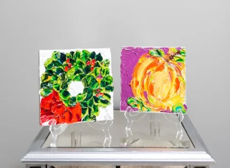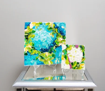 This texture adds additional visual interest, and another dimension to my powder room where there is no furniture. Jan paints numerous kinds of flowers, and do check out her HOLIDAY paintings! Who wouldn’t want at least one?