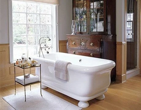 Opposites Attract - Ok, this is where it gets really fun. Some of the greatest surprises in design are taking two opposite things and placing them together in the same room. In a master bathroom, designer Paolo Moschino placed a 19th-century English secretary in a traditional bathroom. It also added a lot of needed additional storage. Check out the AMAZING results: